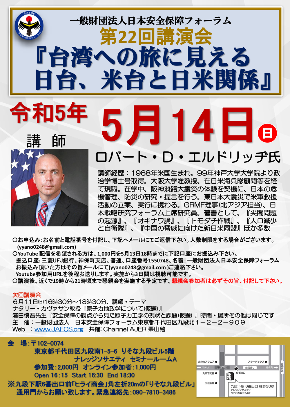 NEWS (一財)日本安全保障フォーラム第22回講演会のご案内 2023.04.12 by JAFOS 事務局 0 この情報へのアクセスはメンバーに限定されています。ログインしてください。メンバー登録は下記リンクをクリックしてください。既存ユーザのログインユーザー名またはメールアドレスパスワード ログイン状態を保存する 新規ユーザー登録ユーザー名*名*姓*住所1*住所2市区町村*都道府県*郵便番号*国*Phone*メール**必須項目