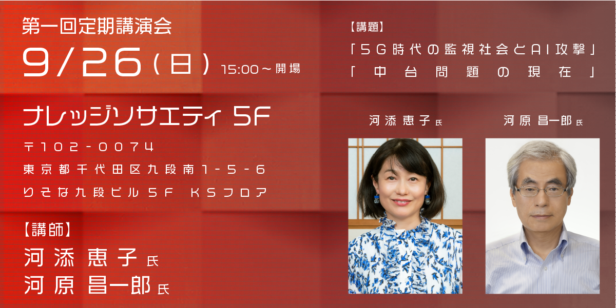 9月次講演会開催 主催:日本安全保障フォーラム 共催:Channel AJER 栗山 勉 日時:2021年9月26日(日) 開場:15:00~ 開演:15:30~ 参加費用:3,000円(税込) 場所:ナレッジソサエティ […]