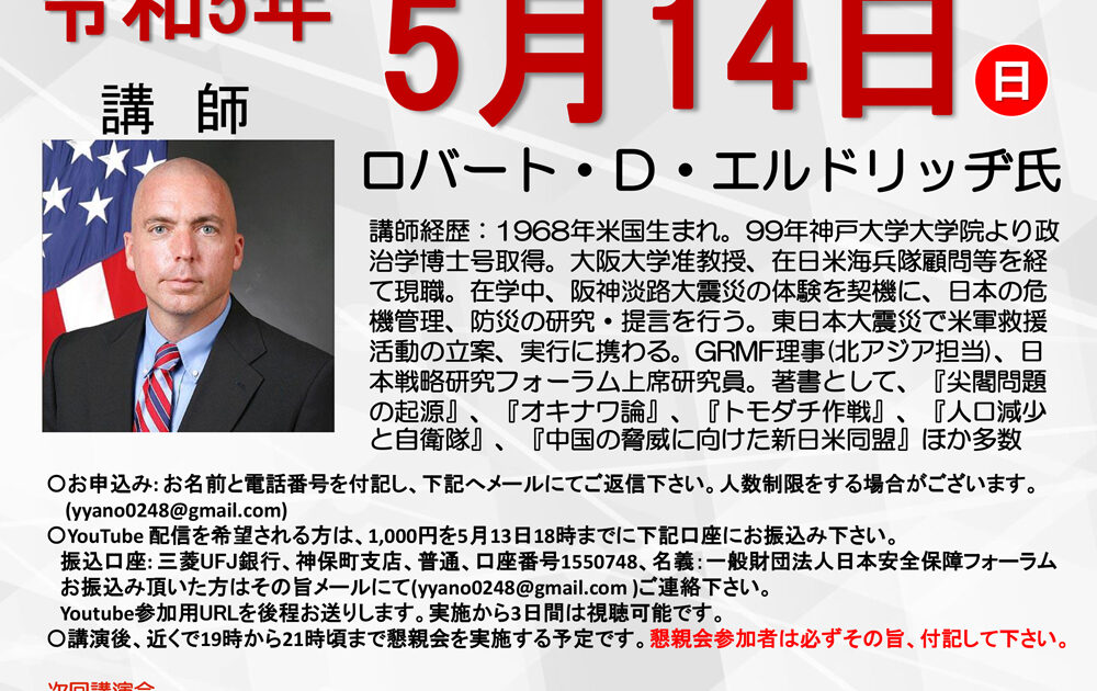 中国を仲介とするウクライナ停戦への動きがみられる一方、蔡英文訪台、陸自ヘリ墜落に続き、台湾近海で人民解放軍が大規模演習を行うなど、台湾正面が緊張の度を高めています。 5月14日(日)ロバート・D・エルドリッヂ博士による日 […]